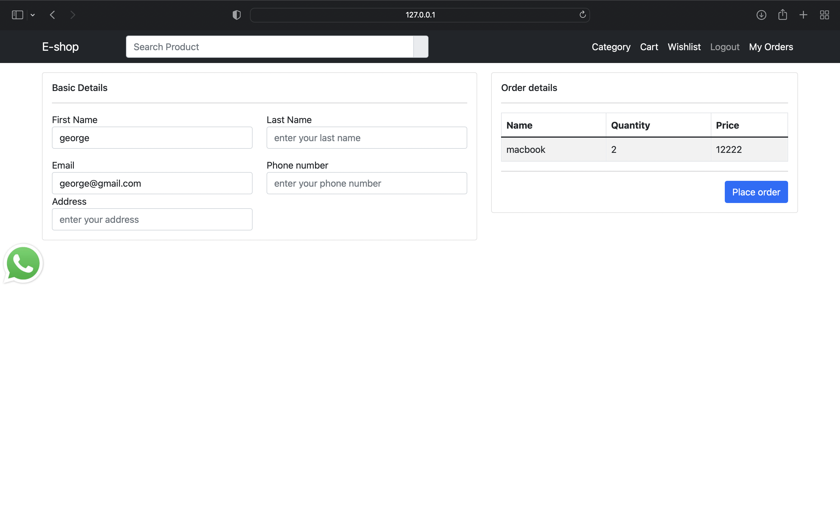 Checkout page